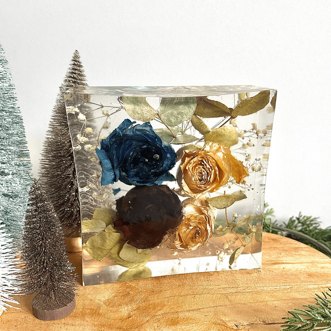 Vous souhaitez conserver votre bouquet ou des fleurs qui vous tiennent à cœur ? Offrez-leur une seconde vie grâce à une création unique et personnalisée en résine.
