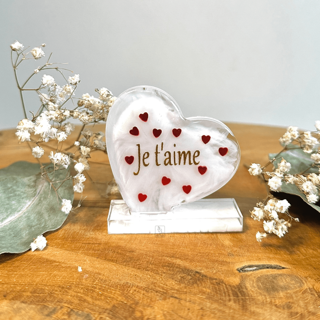 Cœur sur socle Dimension : environ 10x10cm et 2cm d’épaisseur Délais de livraison entre 3 et 5 jours -10% avec le code BIENVENUE10