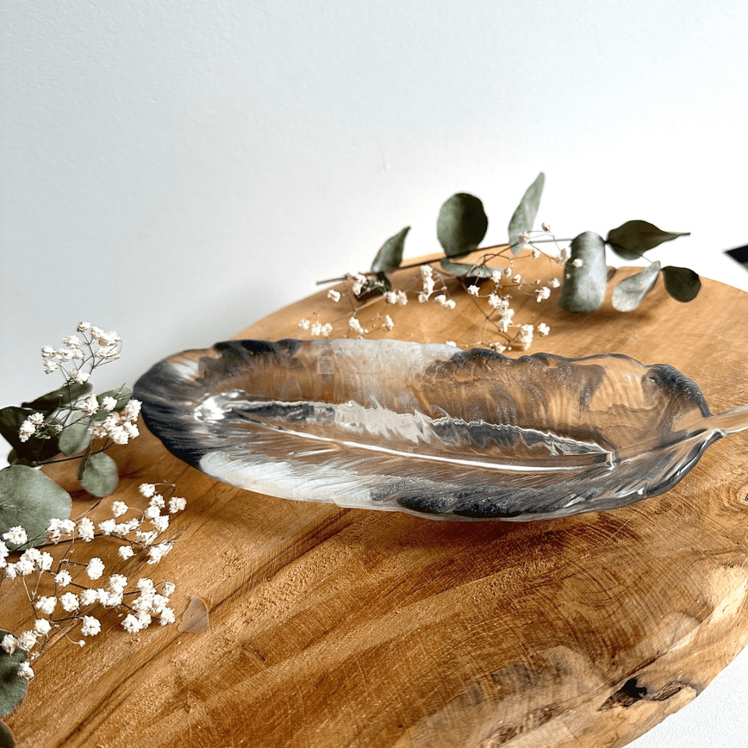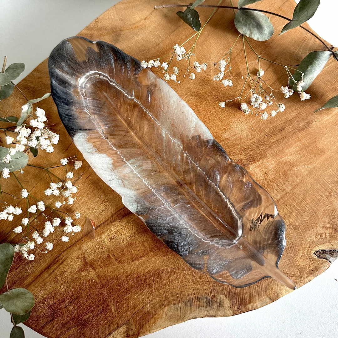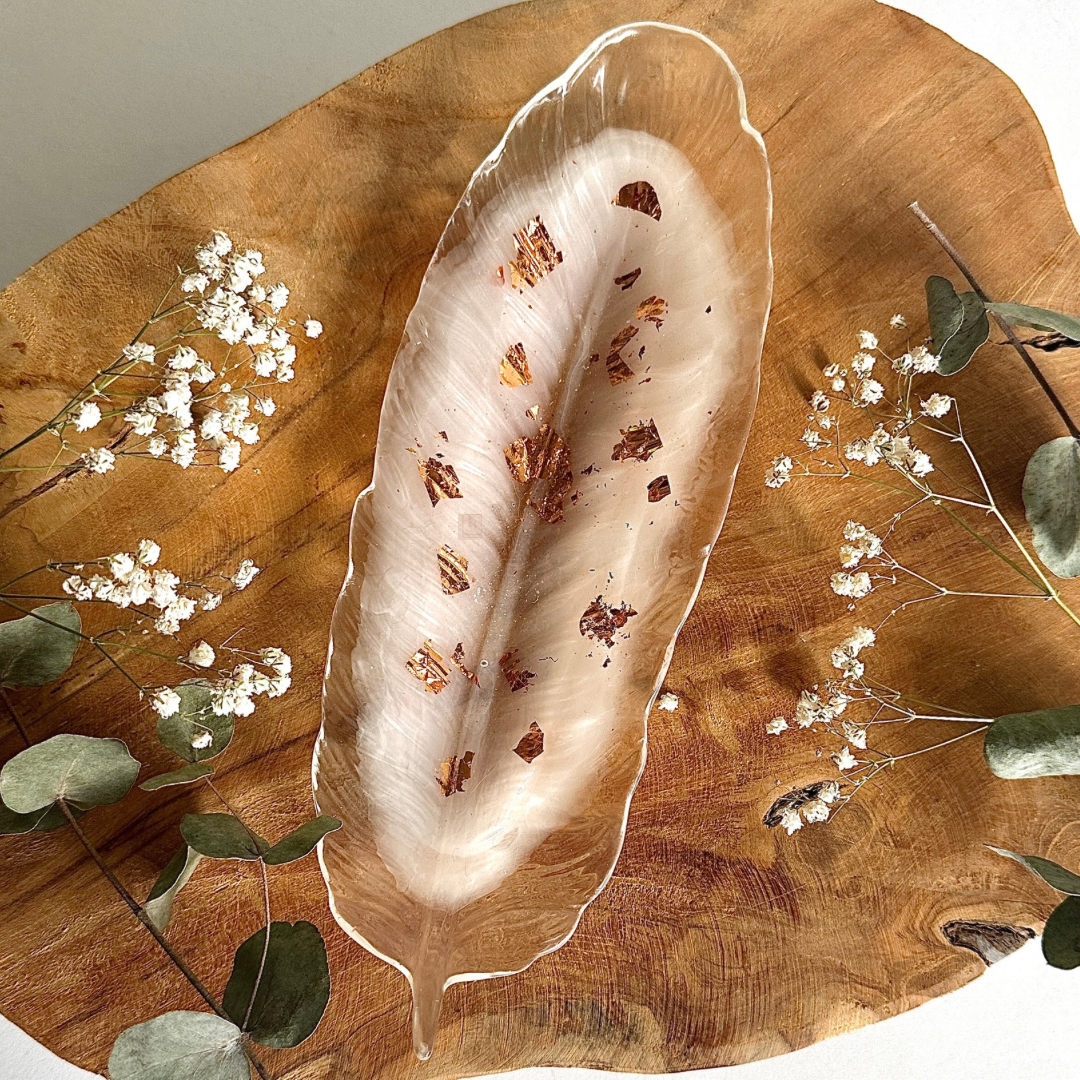 🌸 Vide-poche plume blanc et feuilles cuivrées, dimension : environ 22x8cm